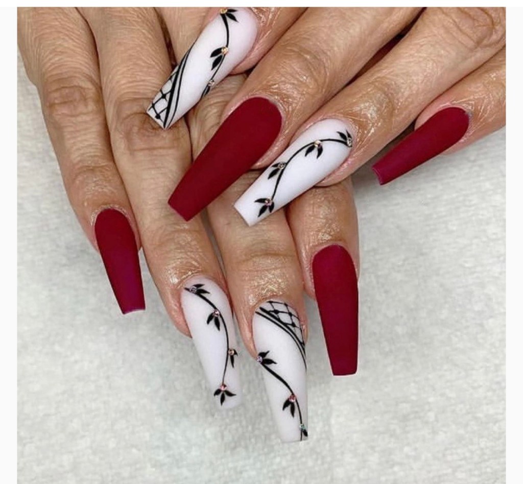 Stiletto nails are the epitome of fierce seduction. Choose a deep, sultry color like wine red or dark plum. Here is the perfect set! Embellish with gold foil or glitter for an ultra-glamorous touch that will have hearts racing.